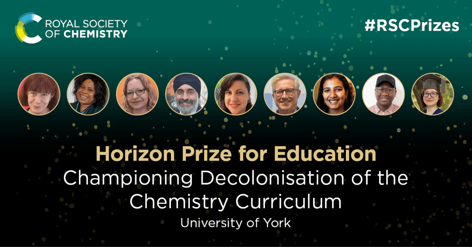 A huge congratulations to University of York Chemistry staff and students who have won the Royal Society of Chemistry’s 2025 Horizon Prize for Education! The group – Caroline Dessent, Leonie Jones, Avtar Matharu, David Smith, Ruhee Dawood, Samantha Furfari, Kgato Selwe, Amelia Milner and Kelechi Uleanya – was awarded the prize “for championing decolonisation of the undergraduate chemistry curriculum, through …